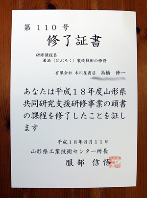 次にきき酒選手権酒田大会で唯一全問正解で優勝した、木川屋スタッフ古家が刈り取り。