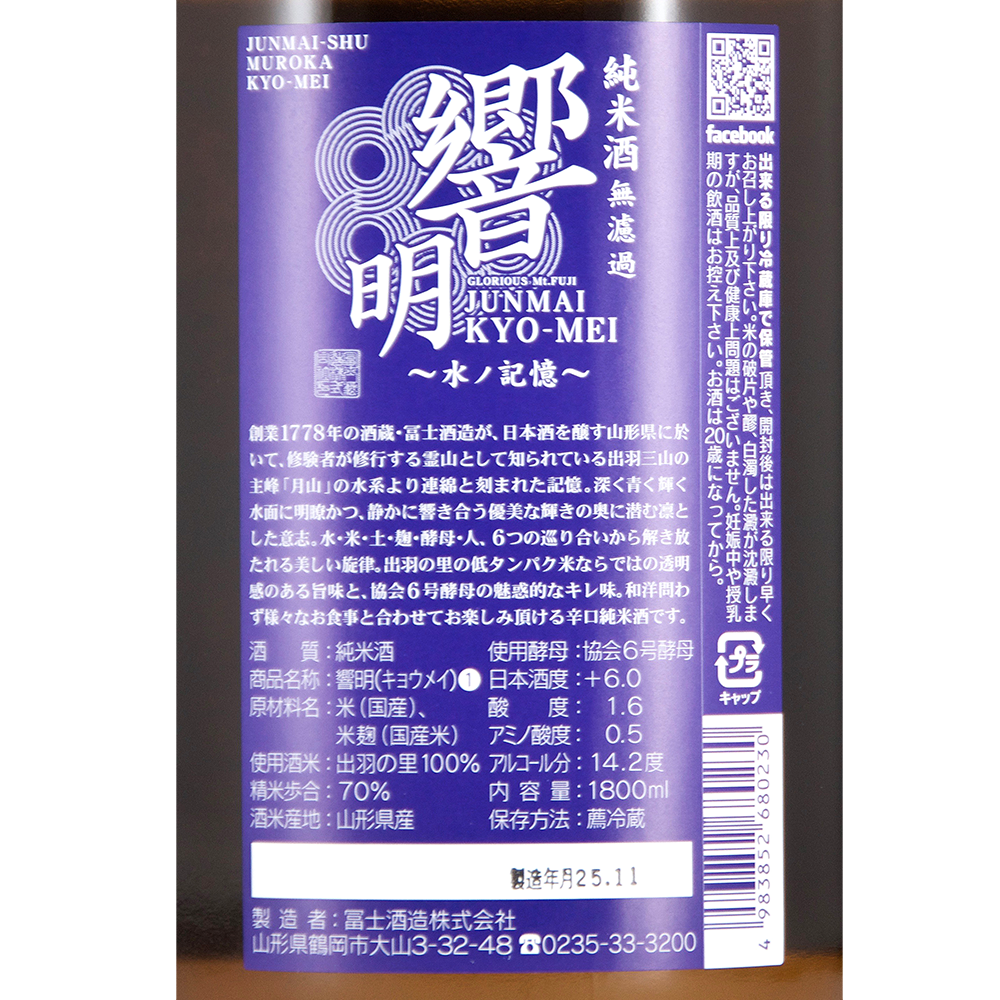 虎退治で名高い戦国武将・加藤清正公をゆかりとする、 総業1778年酒蔵、冨士酒造が日本酒を醸す山形県に於いて、 修験者が修行する霊山として知られている出羽三山の主峰「月山」の水系より連綿と刻まれた記憶。
