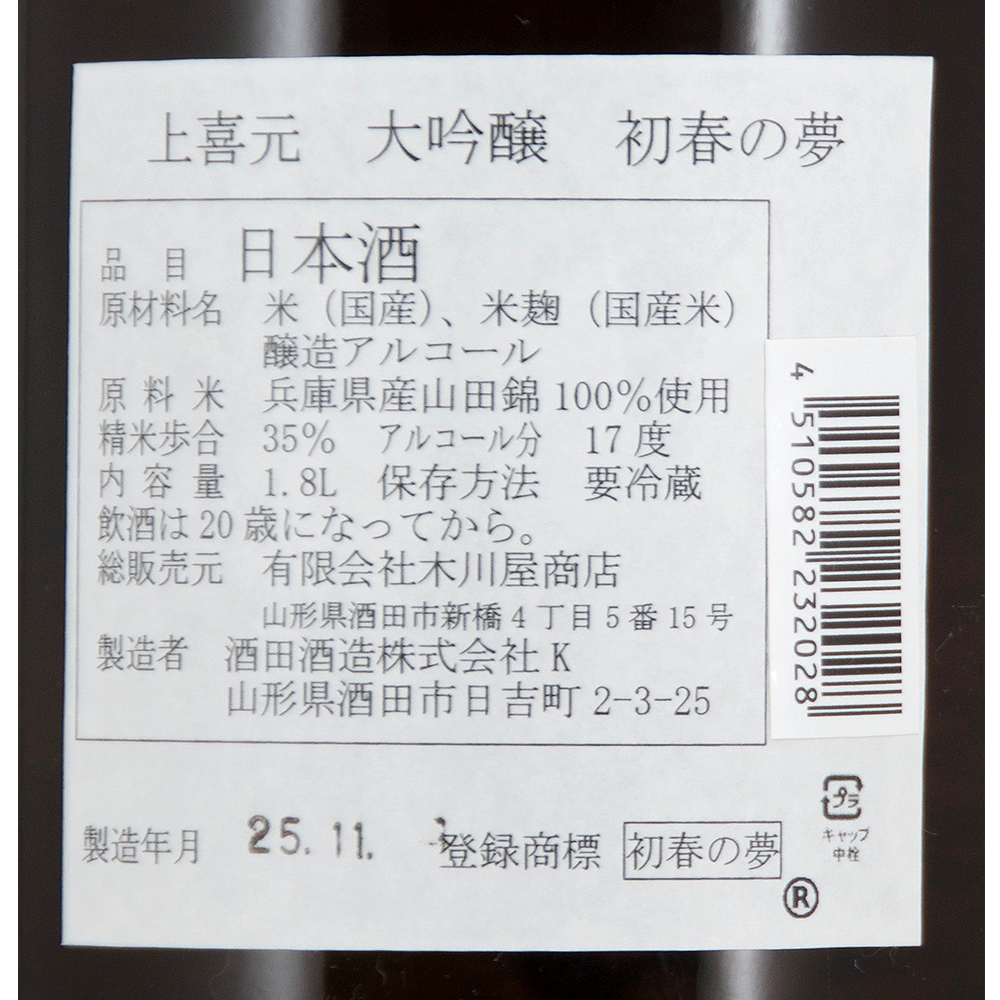 上喜元 大吟醸 山田錦35 初春の夢 2026年 木川屋特注品の感想