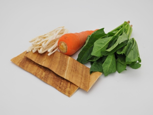 「庄内麸」は、良質の小麦粉と小麦グルテンに水を加えて練り合わせ、薄く延ばした生地を棒に巻き付け、直火で焼き上げ板状にした麩です。