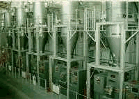 精米作業は昔は杵(きね)を使ったりしていましたが、現在は竪型精米機という機械を 使って精米されています。