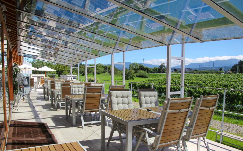 月山を望むゆるやかな丘陵地に葡萄畑が広がり、ワイナリー、レストラン、ショップが一体となった、庄内でもたいへん印象的な場所です。